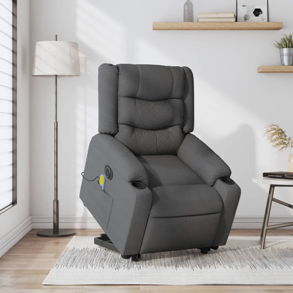 Vidaxl Električni masažni naslanjač s funkcijo vstajanja temno siv