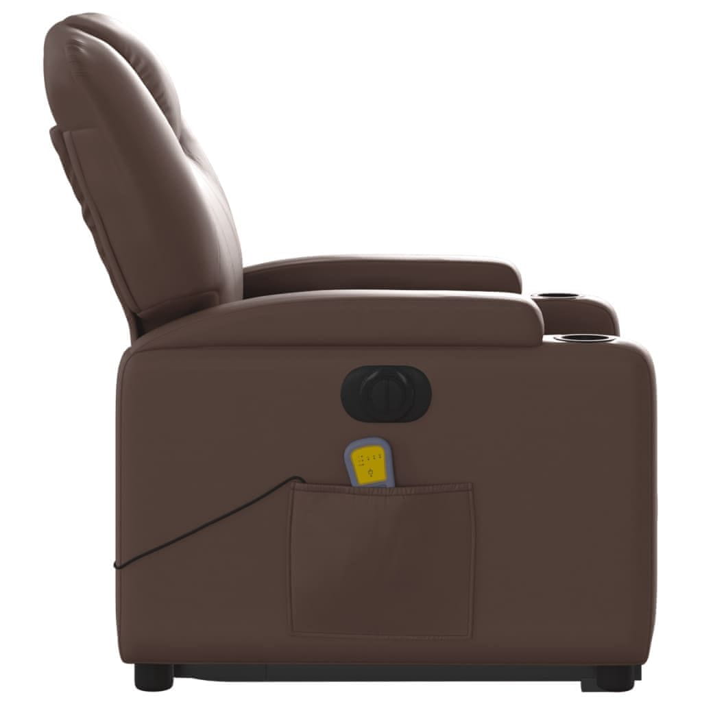 Vidaxl Električni masažni stol s funkcijo vstajanja rjavo umetno usnje