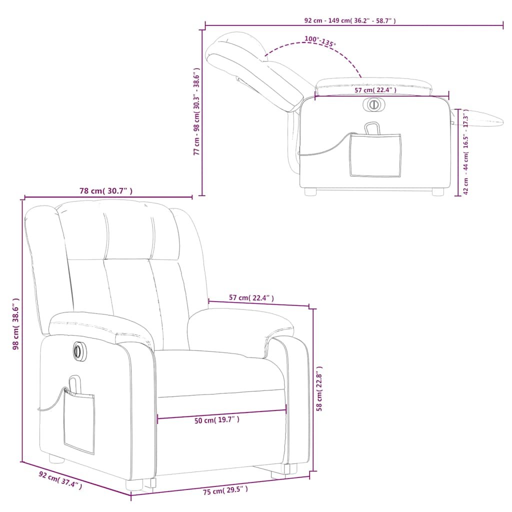 • Funkcija električnega nagiba: Ta naslanjač je opremljen tudi z električnim motorjem, ki pomaga samodejno nastaviti naslon za noge in naslonjalo za hrbet v poljuben položaj glede na vaše udobje s preprostim pritiskom na gumb na strani stola. Ta funkcija omogoča največji nagib 135 stopinj. Poleg tega se lahko naslonjalo z enostavnim pritiskom na gumb samodejno vrne na prvotno mesto.