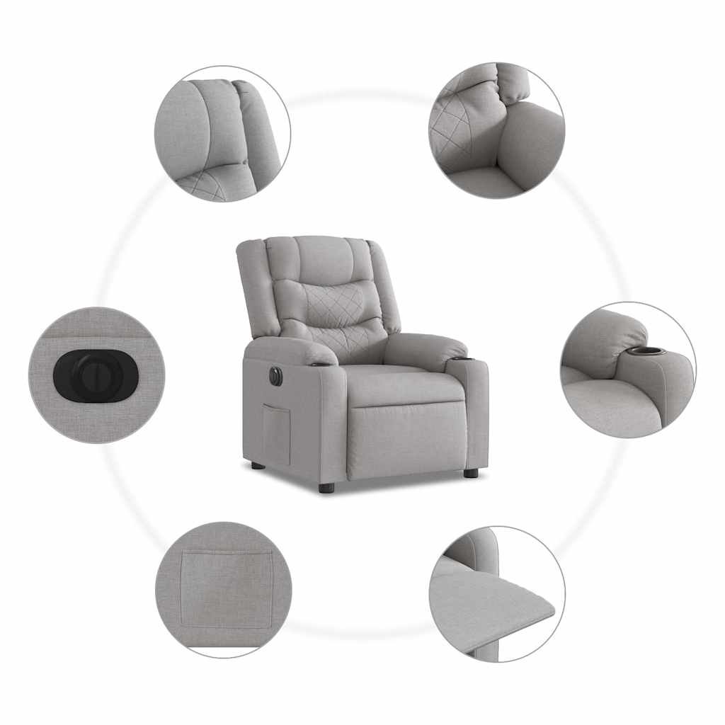 • Funkcija električnega nagiba: Ta naslanjač je opremljen z električnim motorjem, ki pomaga samodejno nastaviti naslon za noge in naslonjalo za hrbet v poljuben položaj glede na vaše udobje s preprostim pritiskom na gumb na strani stola. Ta funkcija omogoča največji nagib 135 stopinj. Poleg tega se lahko naslonjalo z enostavnim pritiskom na gumb samodejno vrne na prvotno mesto.
