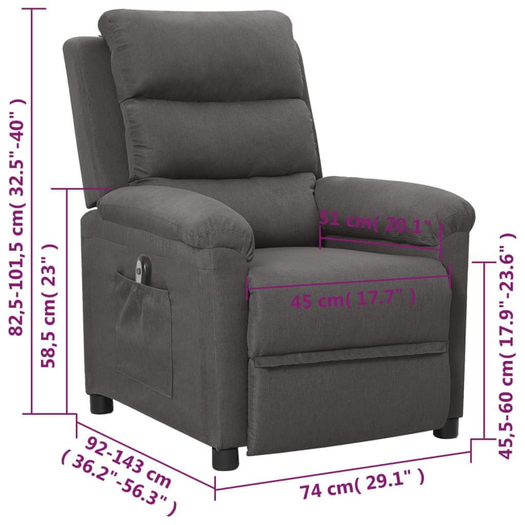 Vidaxl Električni naslanjač temno sivo blago
