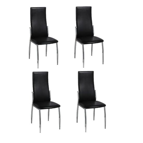 Ti 4 sodobni jedilni stoli se ponašajo z ergonomsko obliko, ki skrbi za večje udobje. Ti udobni jedilni stoli imajo visokokakovostno in robustno konstrukcijo. Noge so izdelane iz stabilnega kroma, sedež pa je izdelan iz trpežnega sintetičnega usnja, ki omogoča preprosto čiščenje.