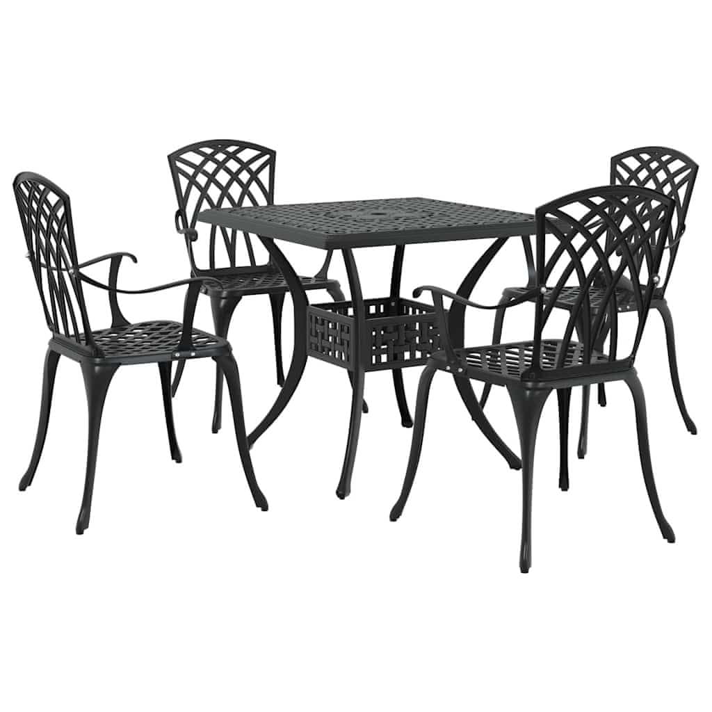 Vidaxl Komplet vrtne mize 5 pcs Črna 80 x 80 x 75 cm Lit aluminij