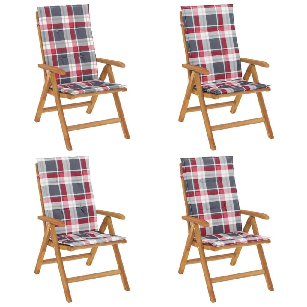 Vidaxl Vrtni stol s funkcijo nagiba z blazinami 4 kosi trdna tikovina