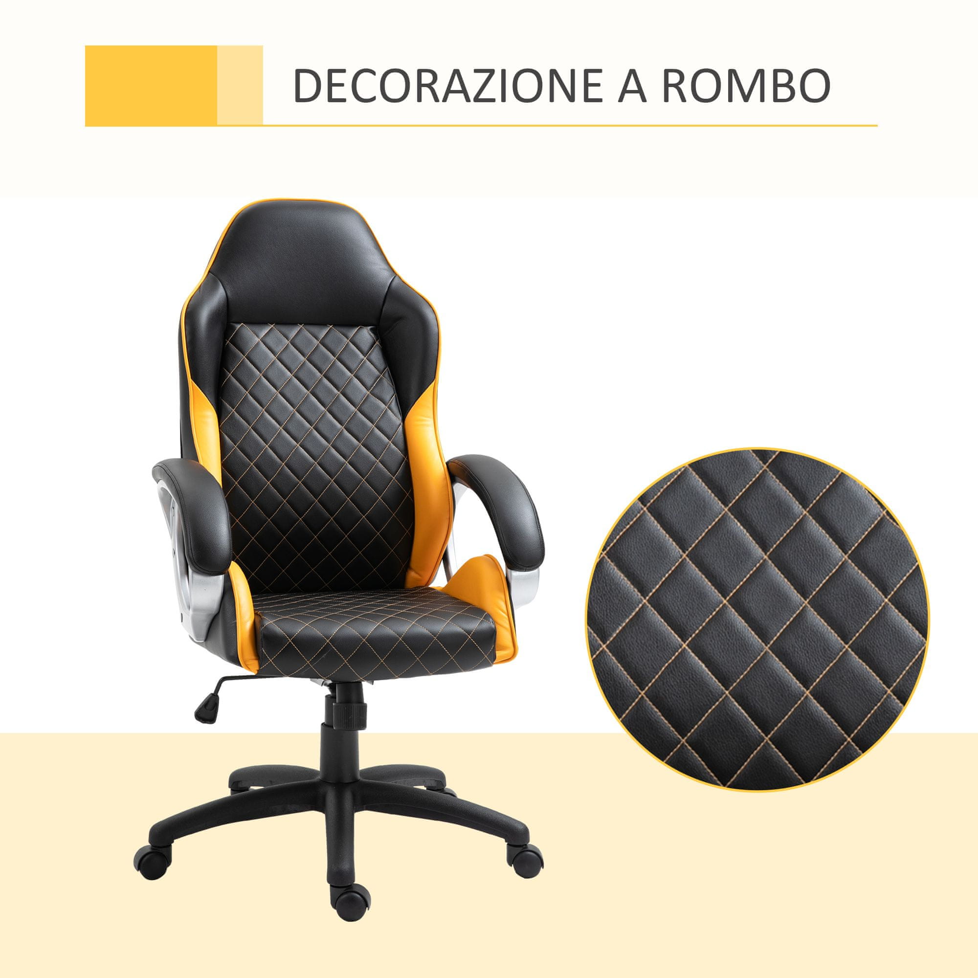 VINSETTO ergonomski pisarniški stol z nastavljivo višino, kolebnico in vrtljivimi kolesi oranžne barve, 64,5x72x121-131cm
