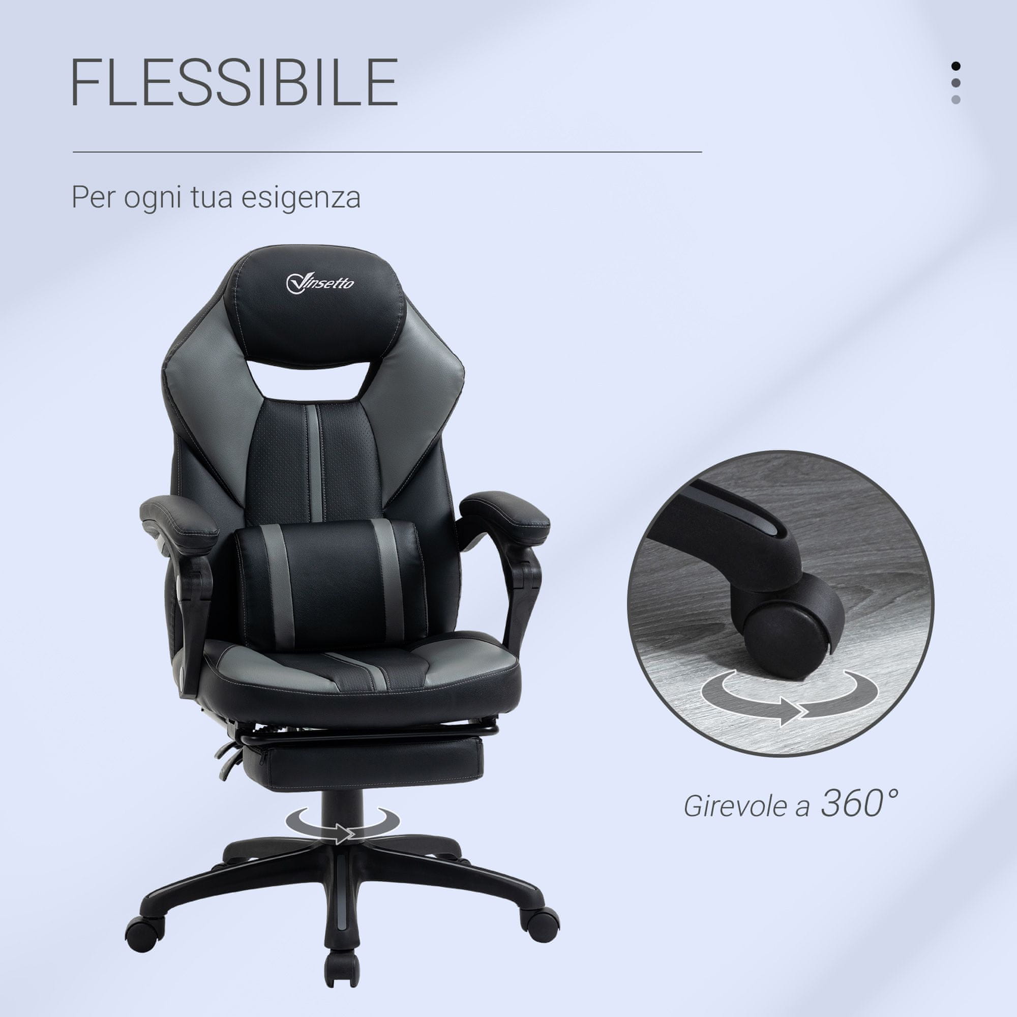 VINSETTO Oblazinjen dirkaški pisarniški stol z nastavljivo višino, ergonomski stol z odstranljivim naslonom za noge v črni imitaciji usnja in Siva