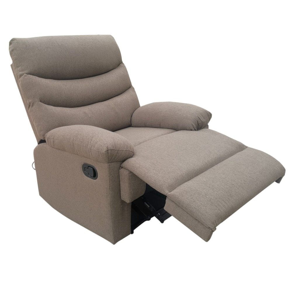 Predstavljajte si, da po dolgem dnevu pridete domov, se usedete v popolnoma udoben stol, z eno potezo nastavite položaj, zaprete oči in se prepustite prijetni masaži. Sliši se mamljivo? Z masažnim polohovalnim stolom LAMBO si lahko ta občutek privoščite vsak dan. Oblazinjeno je s tkanino v rjavi barvi, udobje med počitkom pa povečajo udobni nasloni za roke. Ima dve vibracijski točki, nameščeni na hrbtnem naslonu. Masaža ponuja dve ravni intenzivnosti in se upravlja z majhnim upravljalnikom. Gumb ON/OFF zažene nežno masažo, s ponovnim pritiskom se preklopi na intenzivnejšo masažo, s tretjim pritiskom pa se izklopi. V spodnjem delu stola se nahaja ročni mehanizem za izvlek podnožja, ki vam nudi popolno sprostitev za noge. Celotne mere fotelja so (ŠxGxV): 86×98/161×74/98 cm, višina sedišča je 46 cm. Nosilnost stola je 150 kg, dobavljen pa je v razstavljenem stanju.