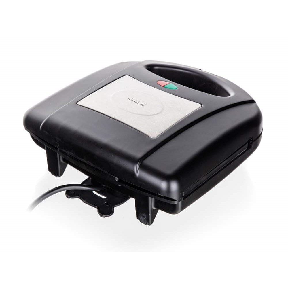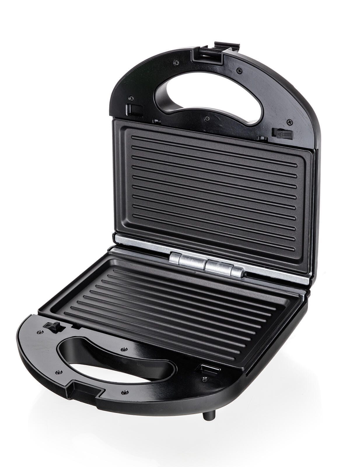 Sankvičnik 3 v 1 s 780 W v črni barvi ima neprijemljivo površino, ki jo je enostavno očistiti. Vključuje 3 pare masivnih plošč – za pripravo sendvičev, za žar in za izdelavo vafljev. Opremljen je s ključavnico plošč za lažje rokovanje, toplotno izoliranim ročajem, lučko za delovanje/pripravljenost in nedrsečimi nogicami.