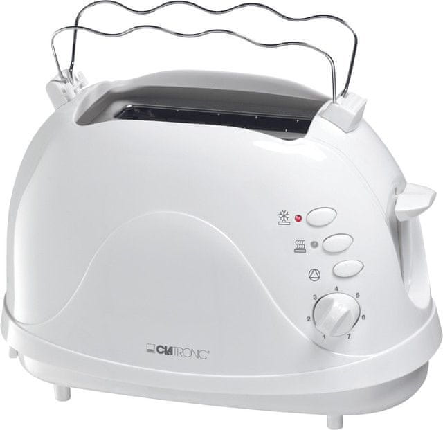 V opekaču TA 3565 lahko hkrati pripravite do dva toasta. Pokrov ne prevaja toplote, zato ostane hladen tudi med delovanjem. Mreža za odmrzovanje je vgrajena v opekač. Opremljena je s funkcijo odmrzovanja in ponovnega segrevanja. Termostat je mogoče brezstopenjsko nastavljati. Na dnu se nahaja posoda Celoten opis