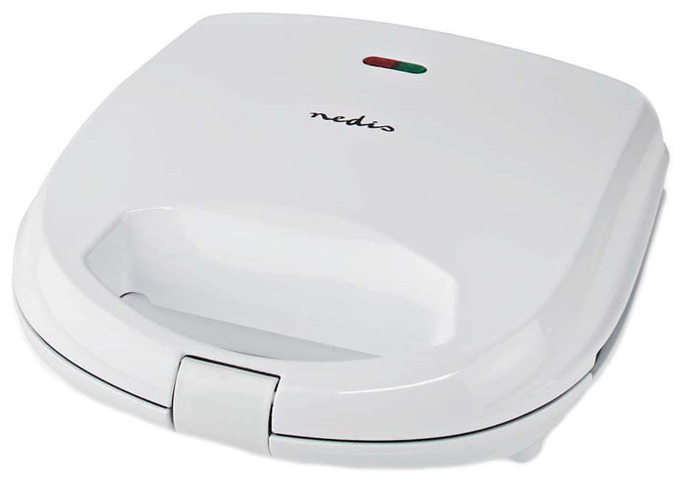 Nedis KASM110FWT opekač kruha za hiter prigrizek v vsakem domu. Preprosto in po okusu pripravite opečene sendviče za vse družinske člane ali obiskovalce. Aparat za pripravo sendvičev vam omogoča, da pripravite dva kosa hkrati. Dve rezini kruha preprosto položite na neprijemljiv pekač, med njiju položite šunko, sir in druge sestavine, jih z zgornjo stranjo pritisnite skupaj in pritrdite s preprostim mehanizmom.