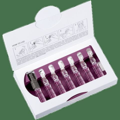 Ampulo pretresite in pokrijte ustje ampule z robčkom ali priloženim odpiračem za ampule. Ampulo primite za vrat ali odpirač in jo s potegom nazaj prelomite na spodnjem barvnem obročku. Koncentrat nalijte na dlan in nanesite na obraz, vrat in dekolte. Nežno vtrite v kožo.