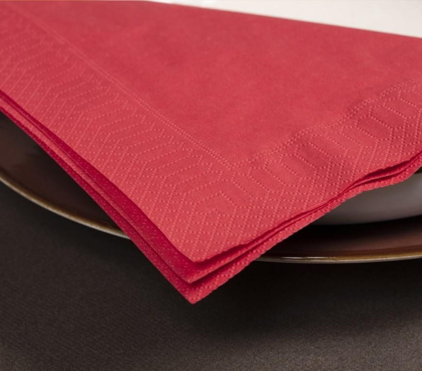 Papirnate serviete najbolj priljubljene dimenzije za uporabo pri strežbi jedi oziroma kot dodatek take-away pakiranju. Dimenzija servieta: 16,5×16,5cm Dimenzija razgrnjenega servieta: 33×33cm Barva: rdeča Tip serviet: dvoslojni Količina: 250 servietov Celoten opis