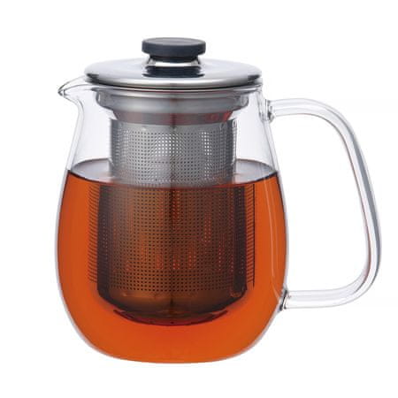 Čajnik KINTO UNITEA je izdelan iz toplotno odpornega stekla, njegove prozorne stene omogočajo opazovanje postopka kuhanja, zaradi profiliranega ročaja pa se čajnik udobno in varno drži v roki. Filter iz nerjavečega jekla je robusten, njegova široka oblika omogoča, da se čajni lističi prosto razvijejo, pripravljen zvarek pa je brez usedlin. Čajnik lahko uporabljate v mikrovalovni pečici in pomivate v pomivalnem stroju.
