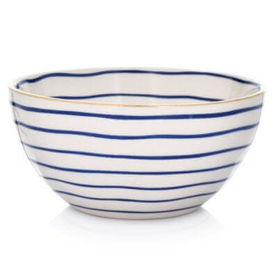 DUKA Siren Vodoravna Črtasta Skleda 500 Ml Mornarsko Modra Zlata Gres