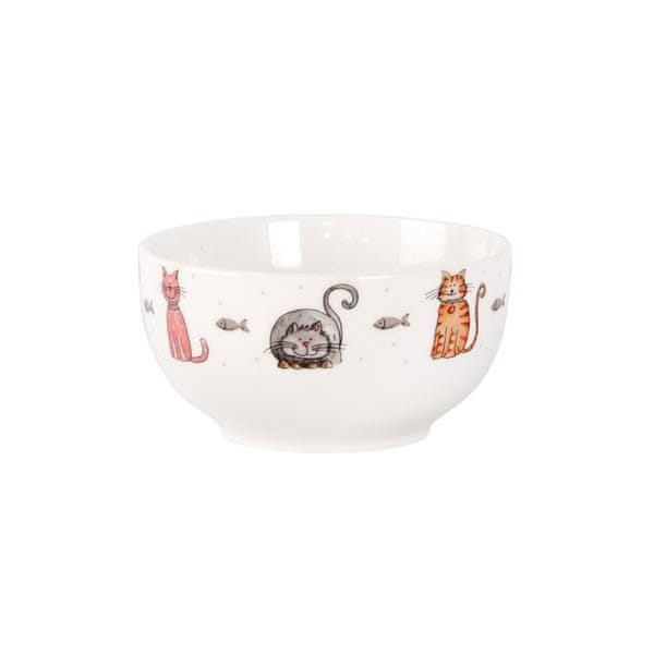 Servirna skleda bele barve s prikupnim potiskom mačke in psa. Celoten opis