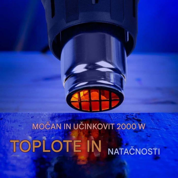 Usmerja koncentriran tok toplote na delovno površino. Primerna je za odstranjevanje barve iz vogalov, rež, okrasnih profilov, letev in obrob.
