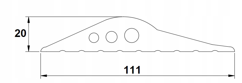 Tesnilo za garažni prag dolžine 5,5 m in dimenzij 20×111 mm iz močne gume učinkovito ščiti notranjost garaže pred vodo, prahom in prepihom. Trpežen profil zagotavlja trdno tesnjenje in enostavno namestitev na vrata.