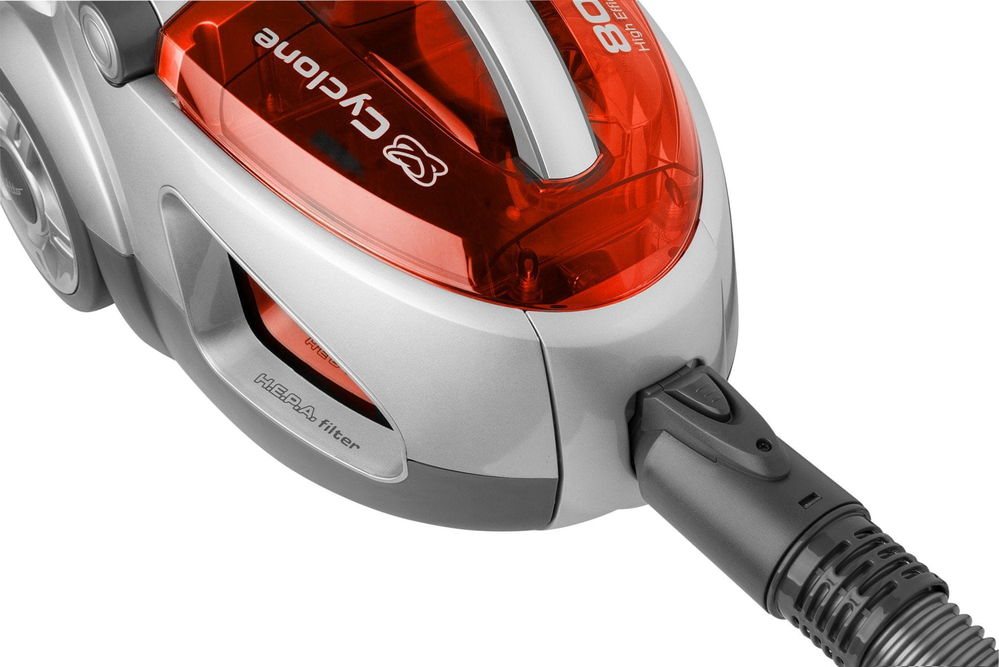 Sencor sesalnik SVC 730 RD se ponaša z izjemno učinkovitim ECO motorjem z močjo 800 W. Po zaslugi ciklonske tehnologije bo iz zraka odstranil vse delce prahu in poskrbel za temeljito čista tla in preproge. Opremljen je s posodo za prah s prostornino 1,5 litra in HEPA filtrom. Omogoča elektronsko uravnavanje moči delovanja.
