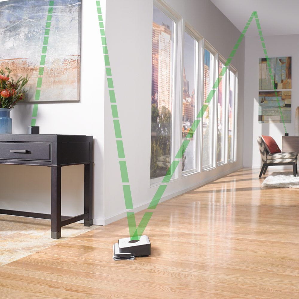 Braava 390t skrbno čisti vzdolž sten in okrog pohištva ter drugih ovir na svoji poti, izogiba pa se tudi preprogam in prehodom na preproge. Zna se izogniti stopnicam in drugim strminam.