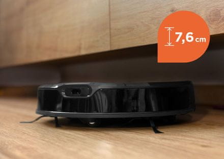 Glavna prednost robotskega sesalnika 2v1 laser koncept VR3300 RoboCross je njegov zelo nizek profil. Za razliko od običajnih laserskih modelov ima ta model lasersko glavo, ki se nahaja znotraj ohišja, kjer je zaščiten pred poškodbami in zunanjo umazanijo. Zahvaljujoč tej oblikovalski rešitvi doseže višino le 7,6 cm, tako da priročno odstranjuje prah in umazanijo tudi pod nizkim pohištvom.