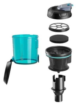 Ciklonski sistem je sestavljen iz centrifugalne sile, ki deluje med vrtenjem vakuumskega zraka na nečistoče in njihovim kasnejšim centrifugiranjem v zbirno posodo. Glavna prednost ciklonskih sesalnikov je odsotnost vrečk in njihova konstantna zmogljivost sesanja. Poleg tega med čiščenjem ni vrtinčenja prahu. Pralni HEPA filter 13 zajame tudi najfinejše prašne delce, zato je primeren tudi za alergike in astmatike.