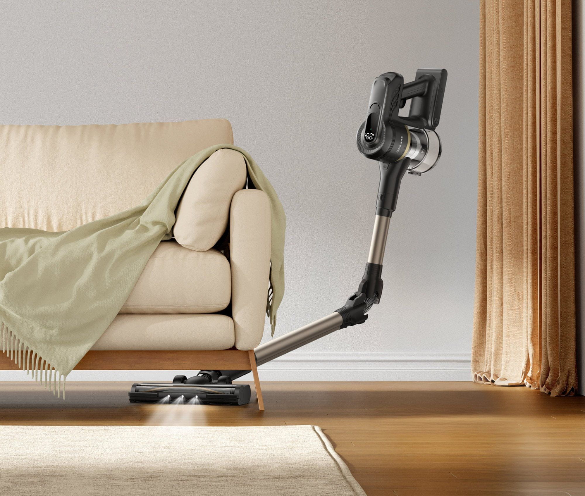 Vgrajen LCD-zaslon prikazuje stanje baterije, preostali čas delovanja in izbrani način sesanja, pametni senzorji pa samodejno prilagajajo moč glede na količino umazanije.