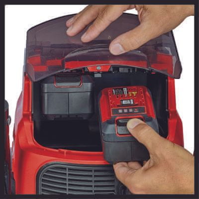 Einhell akumulatorski suhi/mokri sesalnik TE-VC 36/25 Li S-Solo (2347170) spada med izdelke linije Power X-Change. Sesalnik je vsestranski pomočnik za globinsko čiščenje doma kot tudi v poslovnih prostorih in na gradbiščih. Kot brezžični pripomoček zagotavlja svobodo gibanja. Ima dve hitrosti oziroma stopnji moči, Eco ali Boost funkcijo. 25-literski rezervoar iz nerjavečega jekla pa ima zelo priročno odtočno odprtino, ter s tem omogoča hitro in preprosto odstranjevanje nakopičene umazane vode. Sesalec ima priročna kolesca, kar zagotavlja enostaven transport in uporabo. Za čiščenje težko dostopnih površin je na voljo manjši nastavek. Na ročaju je regulator zraku. Priložena je tudi dvodelna sesalno cev iz nerjavečega jekla, univerzalni nastavek, ozek nastavek, oblazinjena krtača, filter, gobasti filter in vrečka za umazanijo iz papirja. Izdelek ne vključuje baterije in polnilnika. Za delovanje sta potrebni 2 bateriji (18 V).