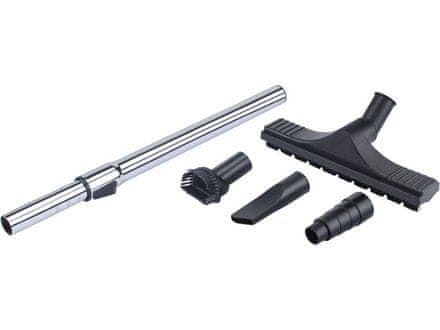 Večnamenski univerzalni sesalnik s posodo za odpadke iz nerjavečega jekla je namenjen suhemu in mokremu sesanju grobih nečistoč, ki niso primerne za sesanje s sesalnikom, namenjenim za čiščenje gospodinjstev, kot so žagovina v domači delavnici ali kosi ometa ali majhne količine tekočin. Odlična lastnost je možnost čiščenja filtra samo z večkratnim pritiskom na gumb na ohišju sesalnika, kar vam prihrani čas pri delu. Sesalnik je opremljen tudi z električno vtičnico na ohišju sesalnika, v katero lahko priključite svoje orodje in nato s tem orodjem na daljavo vklopite in izklopite sesalnik. Tako bo sesalnik deloval le, če boste imeli priključeno orodje, in ne bo deloval v prostem teku. Za sesanje običajnih materialov (žagovina, mavec, prah …) je dovolj uporabiti filter HEPA brez vrečke, pri sesanju zelo finega prahu pa je priporočljivo skupaj s filtrom HEPA uporabiti filtrirne vrečke, ki bodo povečale filtrirno zmogljivost sesalnika, preprečile uhajanje prahu v okolico in zmanjšale zamašitev filtra med delovanjem. Pribor vključuje klasične nastavke za sesalnik: univerzalno talno šobo, šobo za špranje, šobo za krtače in univerzalni nastavek za priključitev cevi na stroje z luknjami različnih premerov.