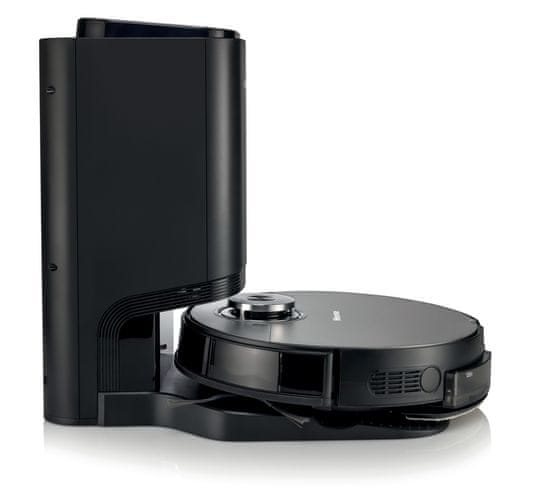 - S svojimi 30-imi senzorji brez težav obvlada vsakršno okolje. Preprogo avtomatično zazna in ob stiku z njo samodejno poveča moč sesanja na maksimum ter s tem zagotovi temeljito čiščenje preproge. Ob sestopu iz preproge samodejno preide v prejšnji način sesanja. Sesalnik RVCL144AB se ponaša tudi z elektronsko nastavitvijo vode v rezervoarju in možnostjo izbire med tremi različnimi močmi vodnega toka. S tem zagotavlja dobro čiščenje različnih talnih površin. Sposoben je zaznati ovire in predmete, kot so stene, vrata, kosi pohištva ali drugi predmeti na tleh, da se med čiščenjem izogne trčenju vanje. Upravljanje z njim je popolnoma preprosto, upravljate ga preko aplikacije ConnectLife Small Domestic Appliances. Ko se baterija izprazni, se avtomatsko vrne na polnilno postajo in se napolni, nato pa nadaljuje čiščenje tam, kjer je prej zaključil. Inteligentna izpraznjevalna postaja se ponaša kar 2.5 litrsko prostornino in ob priključitvi sesalnika nanjo, avtomatsko polni robota, hkrati pa izprazni robotovo posodo za prah. Postaja zbira posesani prah v vrečko za smeti, to pa lahko izpraznite šele takrat, ko se napolni. Inteligentno in učinkovito. Vaše sesanje bo z robtom RVCLS144AB še bolj priročno in zato še večji užitek.