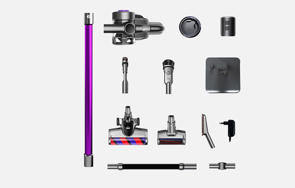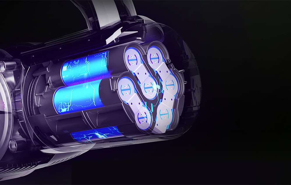 Za dolgo delovanje naprave skrbi vzdržljiva baterija. Sestavljena je iz 7 celic 3000 mAh in omogoča sesanje do 70 minut v načinu eco, 30 minut v načinu turbo in približno 15 minut v načinu max. Sesalnik lahko udobno polnite med pokončnim shranjevanjem s pomočjo posebne baze. Baterijo lahko tudi odstranite in jo polnite ločeno, pa tudi zamenjate.
