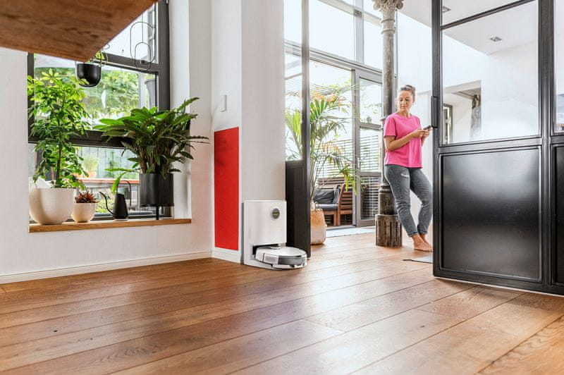 Upravljanje robota je preprosto prek aplikacije Kärcher Home Robots, ki omogoča daljinsko aktivacijo, spremljanje čiščenja v realnem času in nastavitev urnikov. RCV 5 Comfort se po končanem delu samodejno vrne na postajo, kjer se napolni in izprazni, glasovna obvestila pa vas sproti obveščajo o njegovem delovanju.