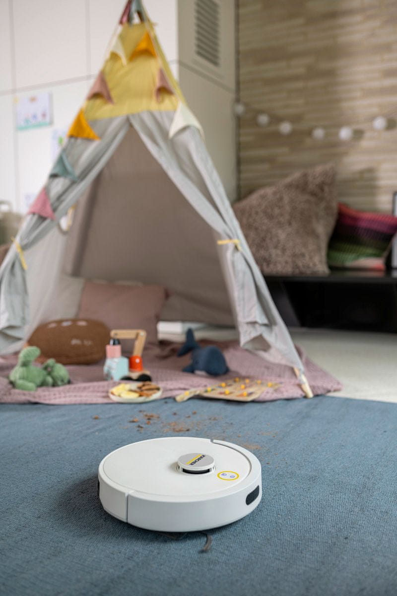 Inteligentni robotski sesalnik in pomivalec tal Kärcher RVC 3 s svojo ekstremno sesalno močjo 15.000 Pa in napredno LiDAR navigacijo postavlja nove standarde v samostojnem čiščenju doma. Naprava sistematično čisti trda tla in preproge z nizkimi vlakni, pri čemer uporablja inovativne krtače s strukturo proti zapletanju las. Prek mobilne aplikacije omogoča natančno kartiranje prostorov, nastavitev prepovedanih območij ter individualnih parametrov čiščenja za vsako sobo posebej, medtem ko nemški strežniki zagotavljajo najvišjo stopnjo varnosti vaših podatkov.