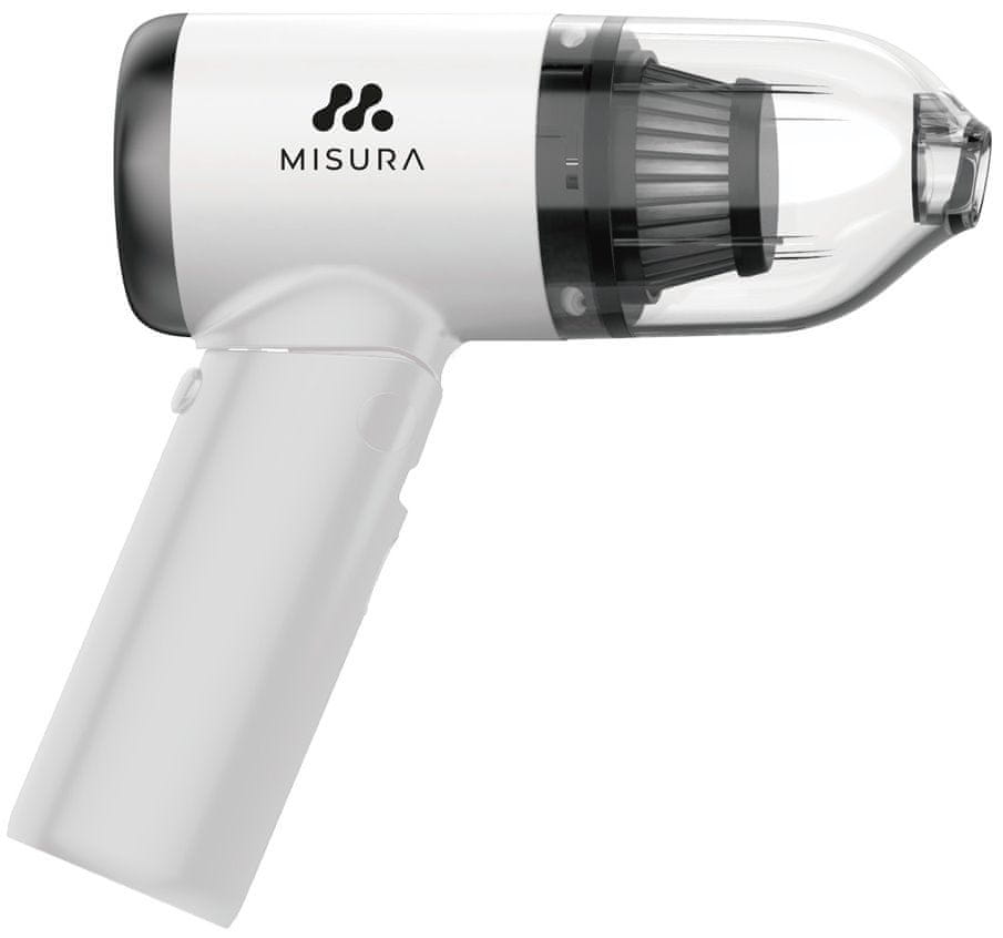Ročni brezžični sesalnik MISURA MA01 je kompaktne velikosti, primeren za sesanje v avtomobilu ali za enostavno sesanje doma. Zahvaljujoč vgrajeni bateriji lahko sesalnik brez napajanja deluje do 25 minut. Zaradi majhne velikosti in majhne teže je z njim enostavno rokovati in z njim veliko lažje priti v težko dostopne prostore v stanovanju ali pisarni.