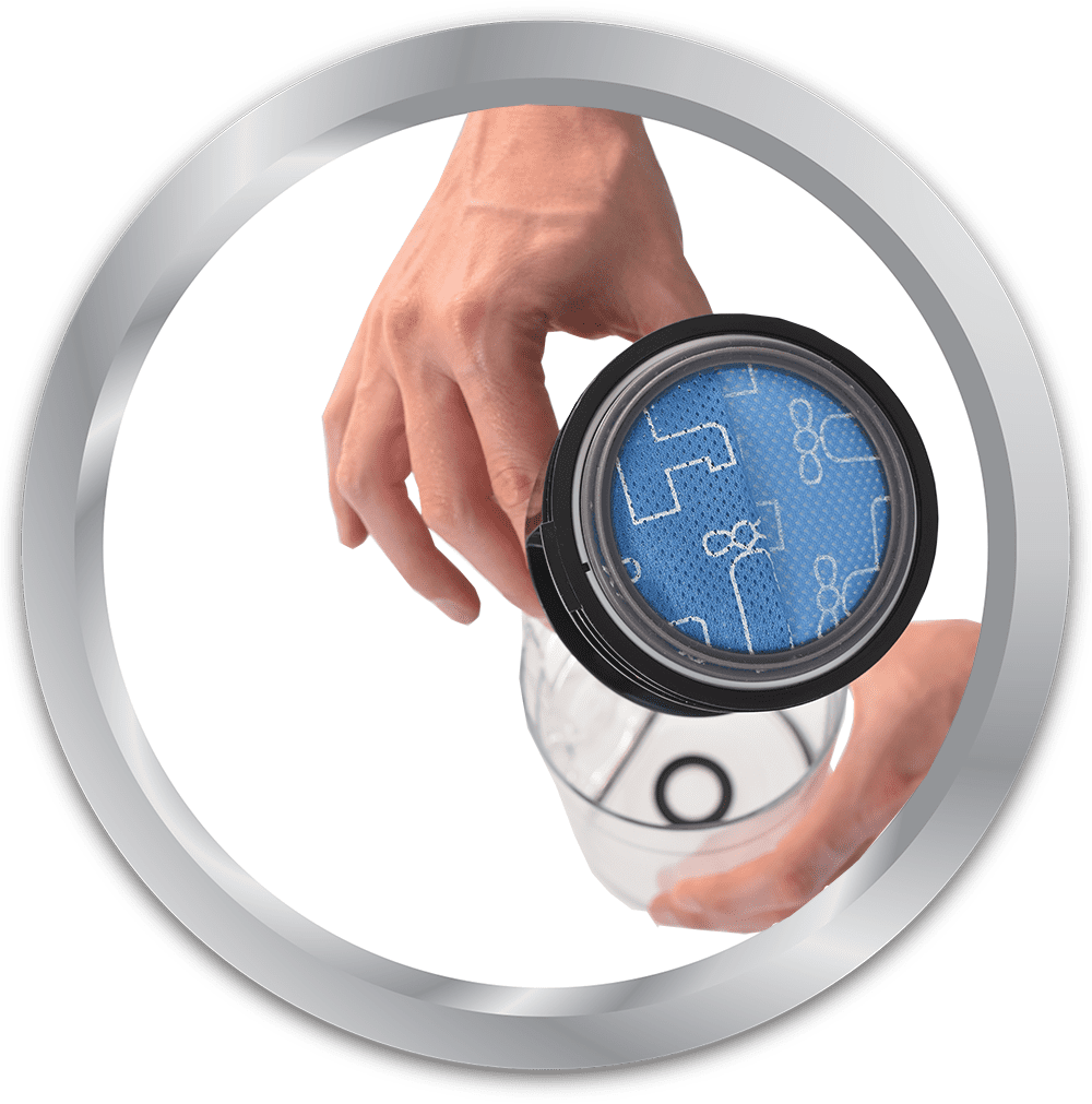 S ciklonskim in HEPA filtrom zagotavlja učinkovito filtracijo, medtem ko senzor v električni krtači samodejno prilagaja moč sesanja. Priložena dodatna oprema, vključno z LED lučjo, upogljivo cevjo ter stensko priklopno postajo, omogoča enostavno uporabo in shranjevanje.