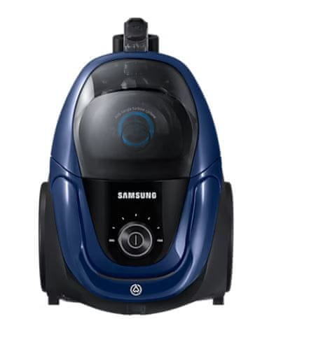 Samsung klasični sesalnik brez vrečke ima 2 l veliko posodo za prah, ki zmanjšuje pogostost praznjenja. Zaradi velikega prosojnega pokrova boste brez težav opazili, kdaj je posoda polna. To posodo nato enostavno odstranite od ohišja in jo izpraznite neposredno v koš tako, da odprete pokrov. Deluje z močjo 700 W, krtača pa nudi 280 mm širino čiščenja. Ciklonska tehnologija s turbino preprečuje zapletanje. Za lažjo uporabo ima funkcijo samodejnega navijanja 6 m dolgega kabla.