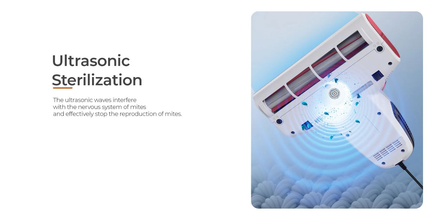 Smarock S10 oddaja UV valovno dolžino 253,7 nm, ki lahko uniči 99,99 % pršic in bakterij globoko v ležišču, ter ustvarja ultrazvočne valove, ki ustavijo razmnoževanje pršic za bolj temeljito čiščenje. Da preprečite poškodbe vaših oči, se bo UV-luč samodejno izklopila, ko dvignete stroj.