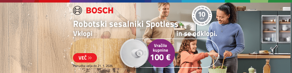 - Robotski sesalniki – akumulatorski pogon, primerni za večje hiše in stanovanja