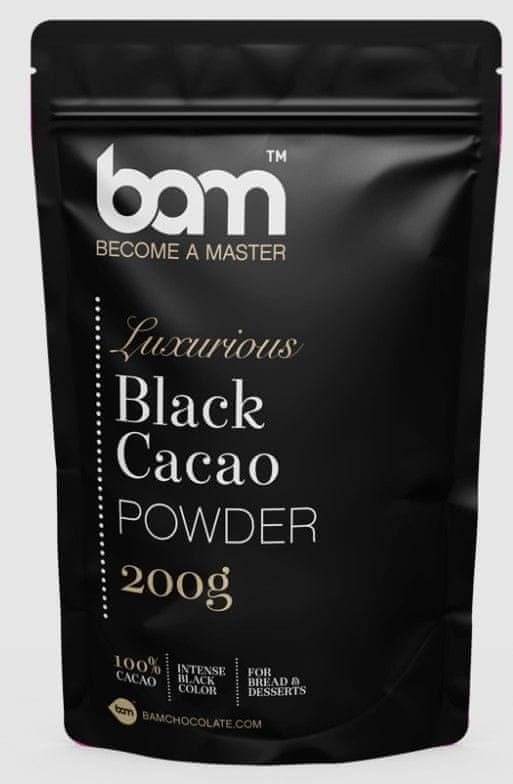 Luxurious črni kakav v prahu je pripravljen je iz 100% afriških zrn, ki poskrbijo za intenzivno črno barvo. Intenzivna naravna črna barva BAM črnega kakava v prahu ne vpliva na njegov okus, zato lahko pripravite priljubljene črne bombetke za burgerje.
