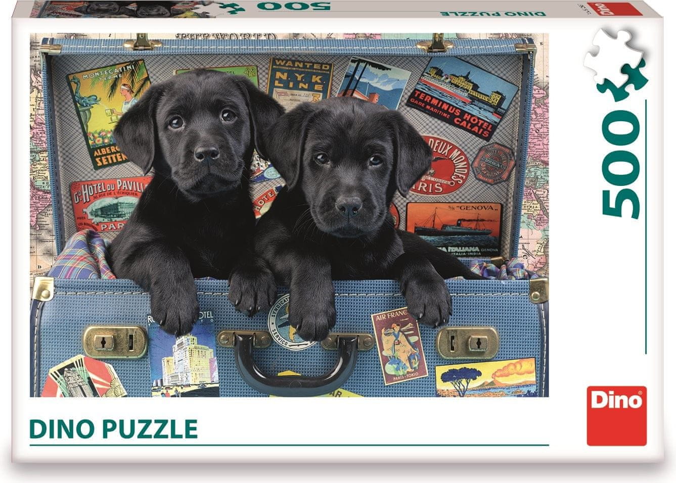 Puzzle Kužki v kovčku 500 kosov avtorja Grega Cuddiforda, znamke DINO. Celoten opis