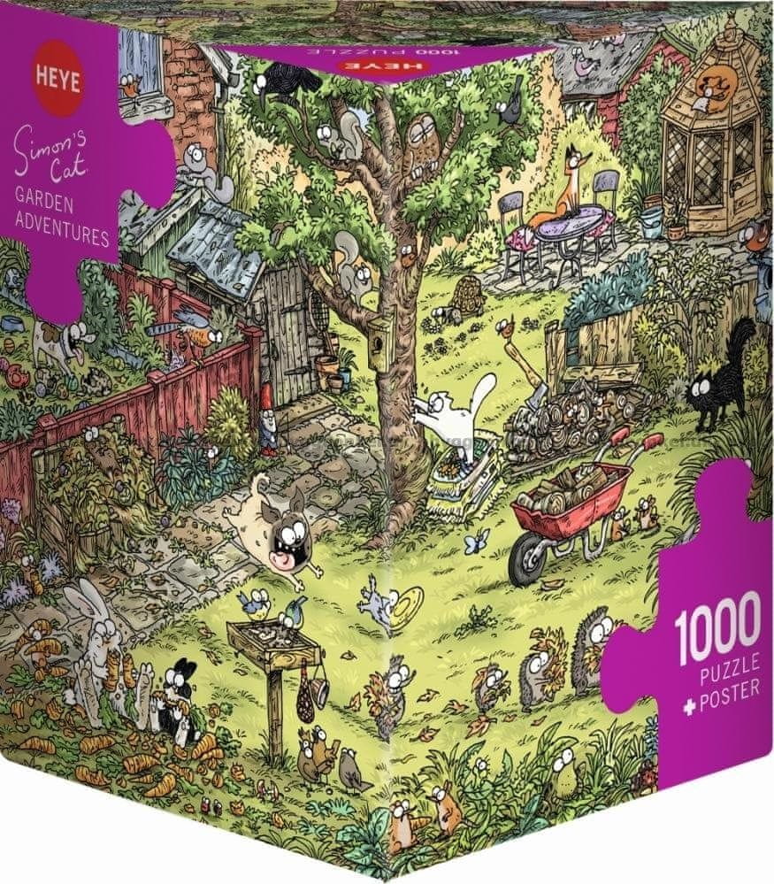 1000-delna sestavljanka Simon's Cat: Garden Adventure, znamka HEYE. Celoten opis