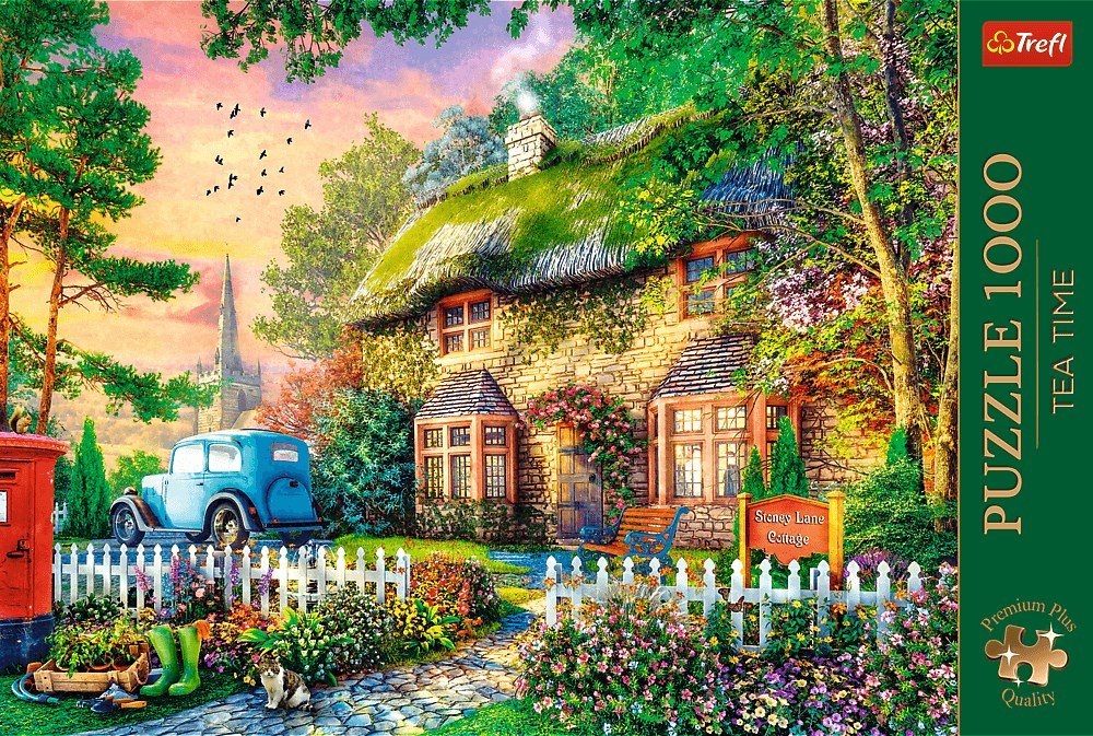 Puzzle Premium Plus Tea Time: Stoney Lane Cottage 1000 kosov, znamka TREFL. Celoten opis