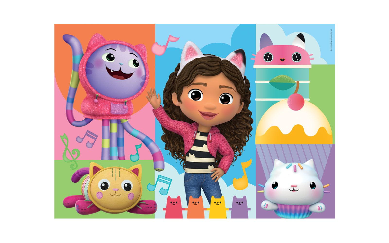 Dve sestavljanki s po 60 sestavnimi deli priporočamo otrokom starejšim od 4 let. Sestavljanke Supercolor Clementoni spremljajo otroka v vseh fazah razvoja in mu pomagajo razvijati ročne spretnosti ter sposobnost opazovanja. Kakovost materialov in posebna tehnika tiskanja zagotavljata vedno lepe, žive in jasne barve za igro, ki ji ni nikoli konca. Motiv Gabbys dollhouse.