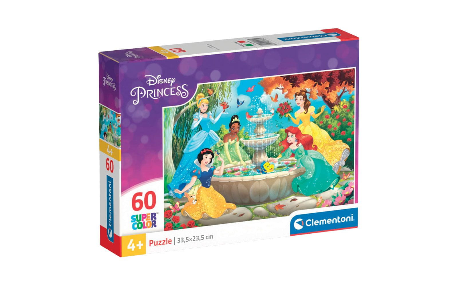 Kakovostna sestavljanka s 60 sestavnimi deli različnih risanih junakov. Sestavljanke Supercolor Clementoni spremljajo otroka v vseh fazah razvoja in mu pomagajo razvijati ročne spretnosti ter sposobnost opazovanja. Kakovost materialov in posebna tehnika tiskanja zagotavljata vedno lepe, žive in jasne barve. Priporočamo otrokom od 5. leta starosti dalje. Na voljo v motivu Princess.