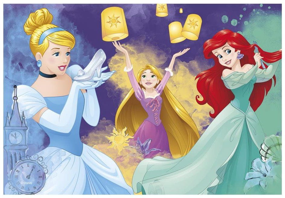 Dve sestavljanki z Disneyjevimi princesami. Velikost sestavljene sestavljanke približno 26 × 18 cm.