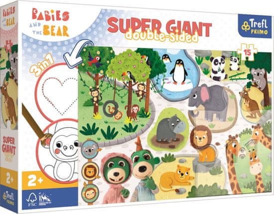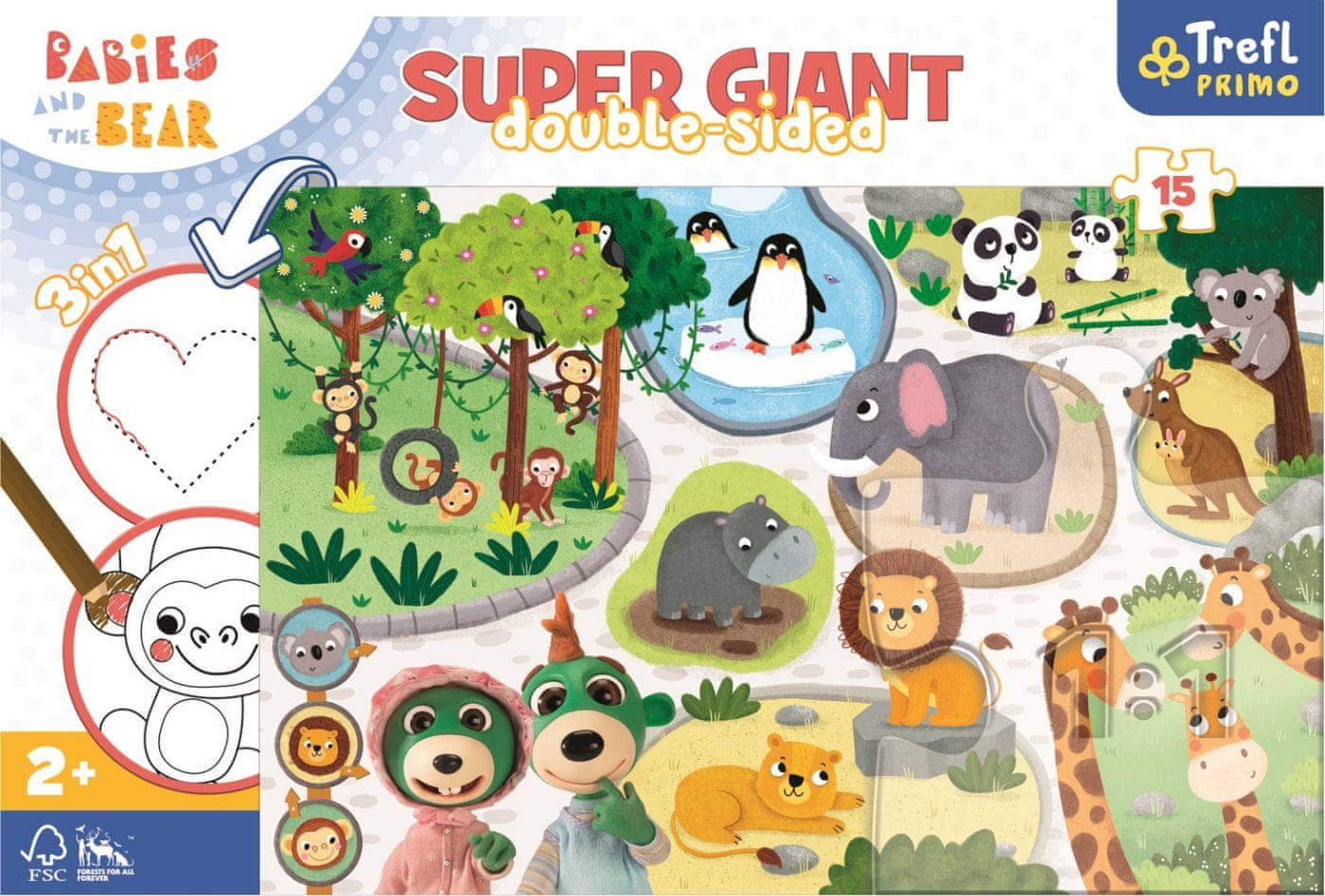 Trefl Dvostranska sestavljanka ies in mladiči v živalskem vrtu SUPER GIANT 15 kosov