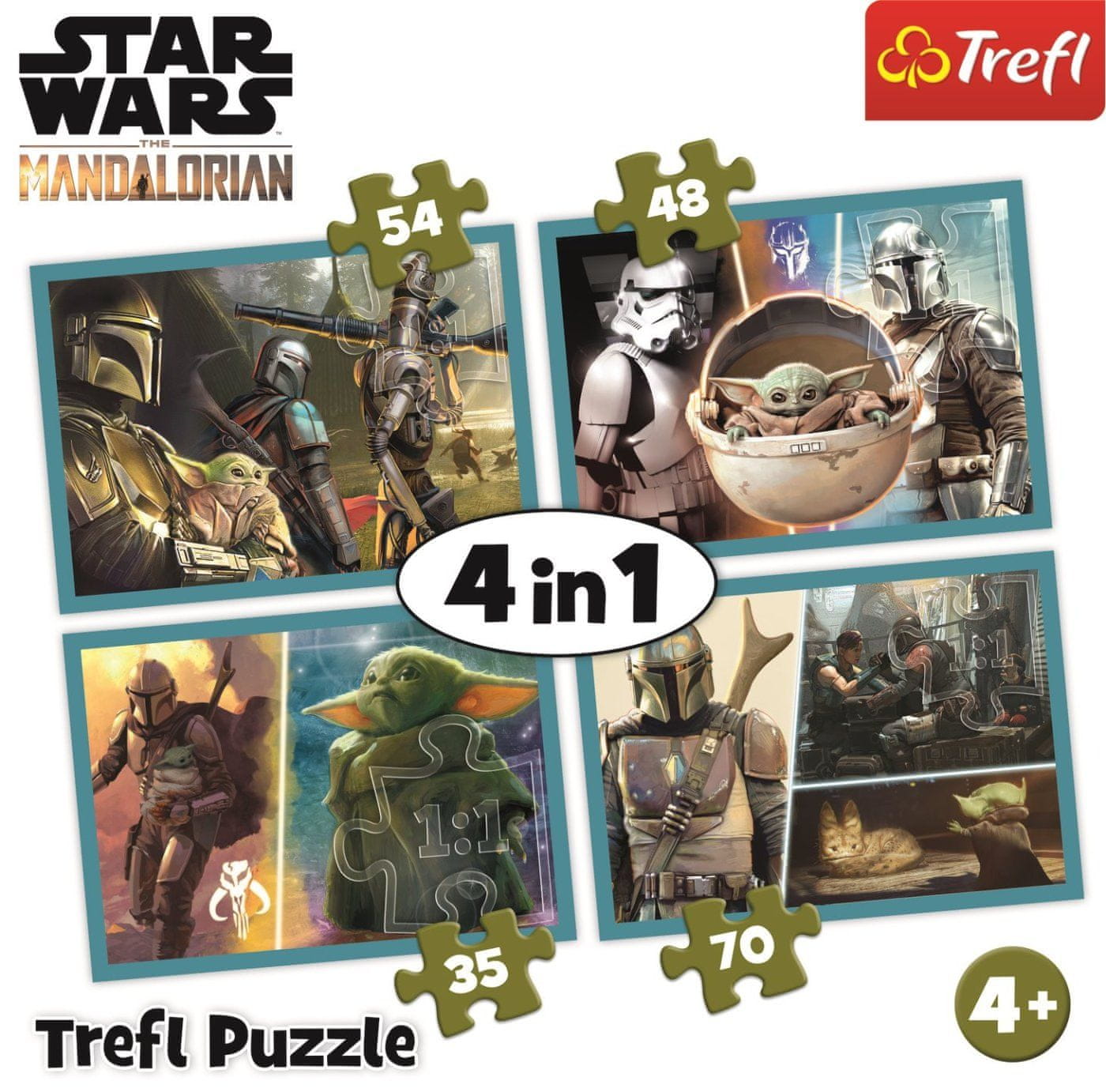 Trefl Puzzle Vojna zvezd - Mandalorian in njegov svet 4v1 (35,48,54,70 kosov)