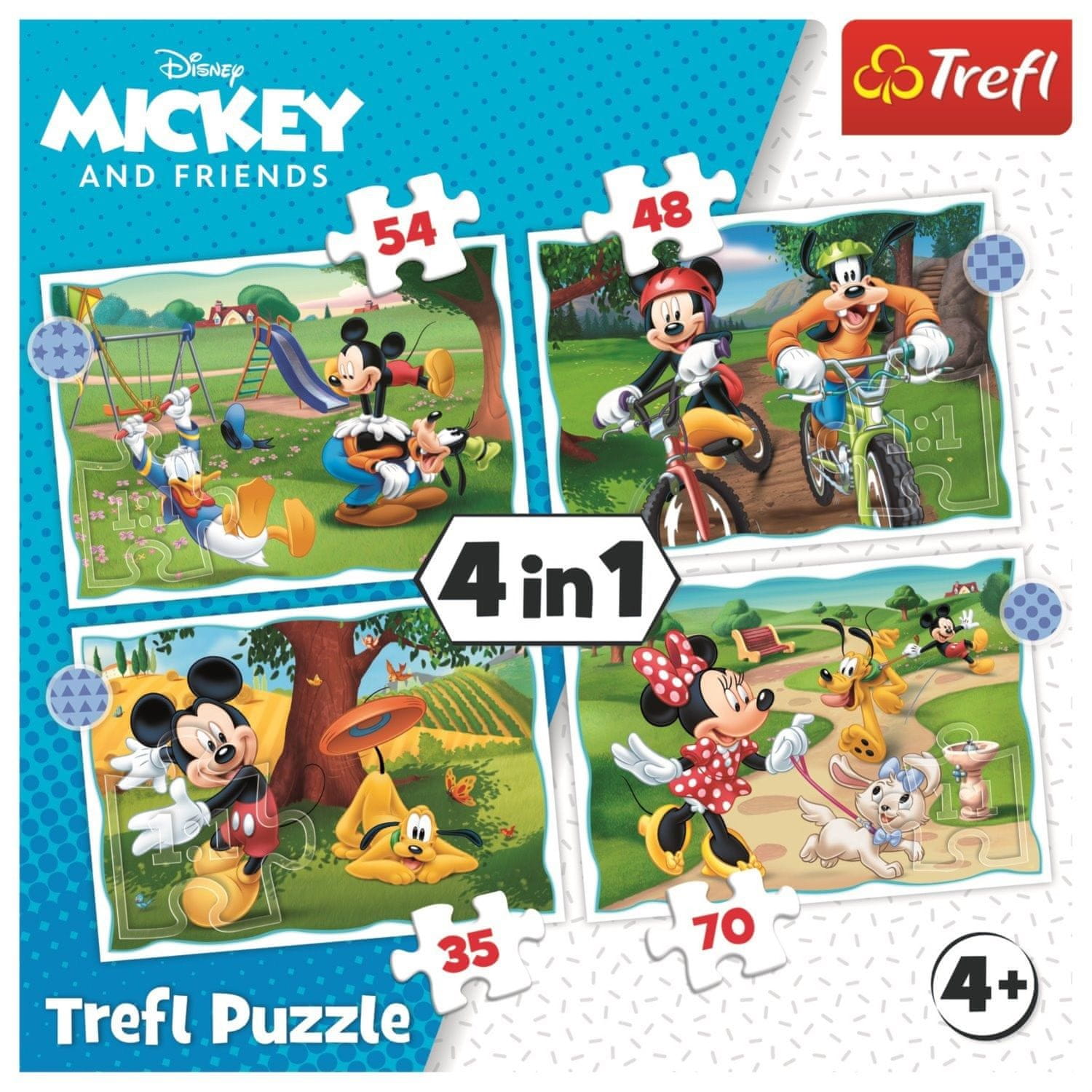 Sestavljanka Mickey Mouse: Lep dan 4 v 1 (35,48,54,70 kosov) od avtorja Disney, znamka TREFL. Celoten opis