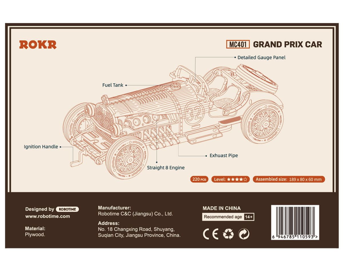 Robotime Grand prix avto, scale model 1:16, Lesena 3D sestavljanka, (MC401)