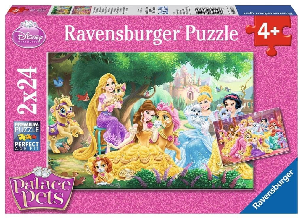 Puzzle Disneyjeve princeske in njihovi ljubljenčki 2×24 kosov od avtorja Disney, znamka RAVENSBURGER. Celoten opis