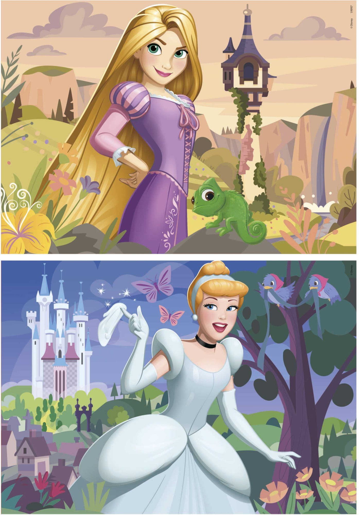 Puzzle za otroke španskega podjetja EDUCA Paket vsebuje dve sestavljanki z enakim številom delov in enako velikostjo Motivi Disneyjevih princes Loci in Pepelke